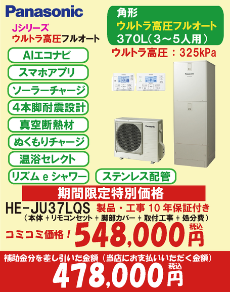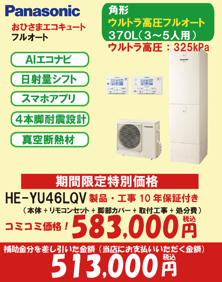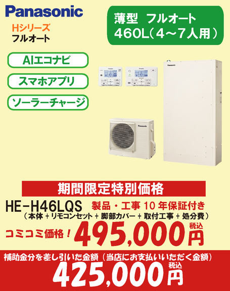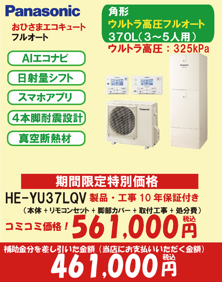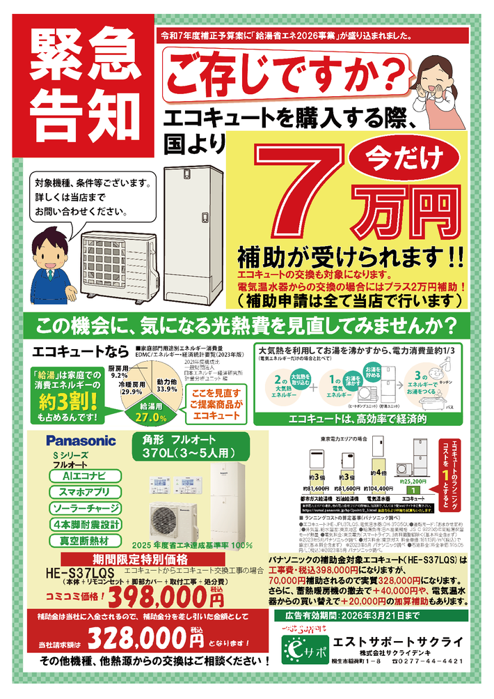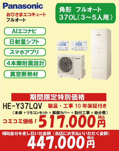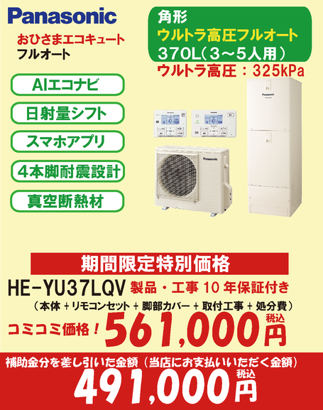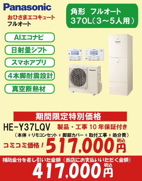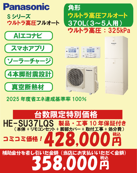 ※エコキュートはお得な特別クレジット(期間限定2025年12月末まで金利0%)がご使用いただけます。ご希望の方はご相談ください。