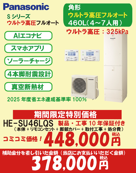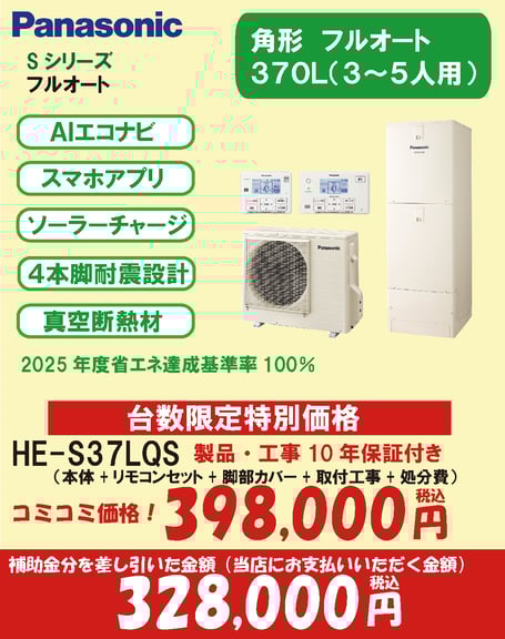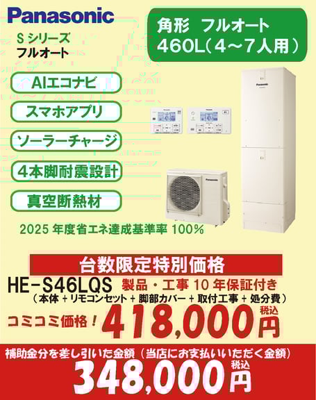 機能は「Sシリーズ」とほぼ一緒です。給湯省エネ事業2025・2026補助金は対象外