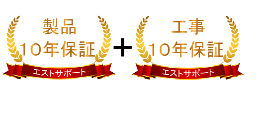安心の10年工事保証付き(自社施工で行った機器本体の設置工事部分に関しての保証です)